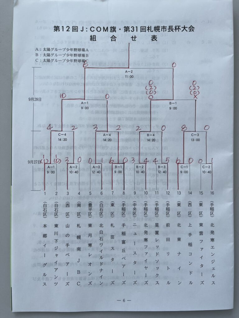9月11日 第12回J:COM旗・第31回札幌市長杯大会の監督会議が開催され9月28日・10月4日に行われる札幌少年軟式野球連盟今年最後の全市大会が開催されます。